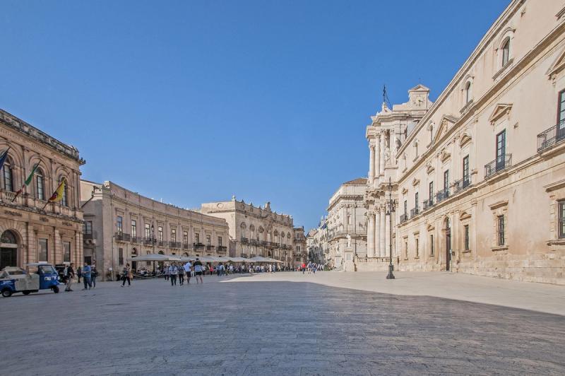 Ortigia è un labirinto di vicoli bianchi, piazze monumentali e affacci sul mare. È un'isola collegata alla città da due ponti ed è quasi interamente pedonale